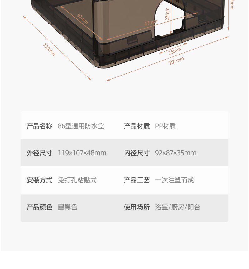 - Интегрированная клейкая водонепроницаемая коробка-белая (без вставки