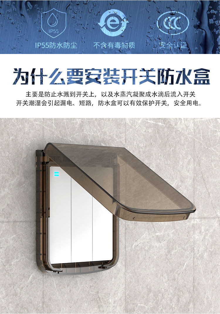 Ультратонкий водонепроницаемый переключатель для ванной комнаты для домашнего использования, водонепроницаемая световая панель, накладки