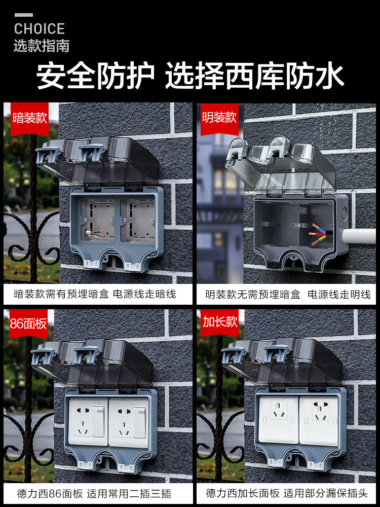 【Xiku】 Темная установка двух водонепроницаемых розетков