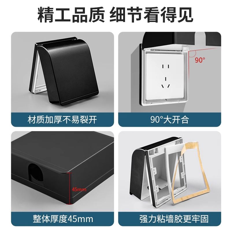 Черный водонепроницаемый переключатель, световая панель для ванной комнаты для домашнего использования, защитная крышка