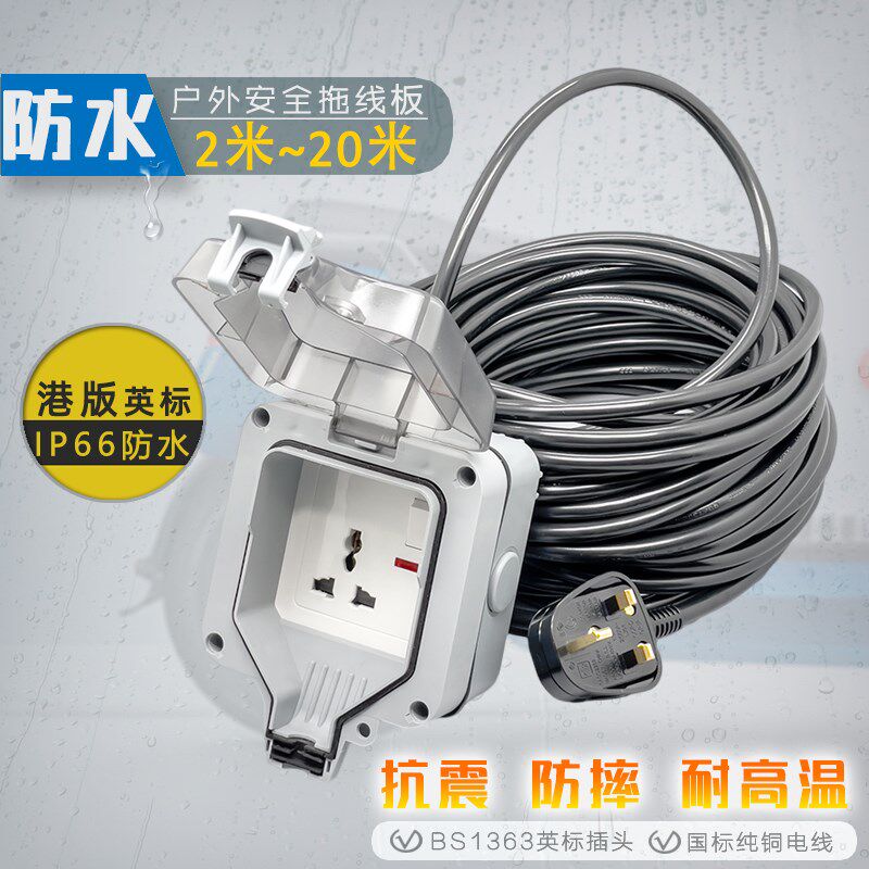 Гонконг и Макао, открытый водонепроницаемый электрический расширитель в британском стиле, внешний британский стандарт, блок питания, защита от дождя, розетка, переключатель утечки, удлинитель