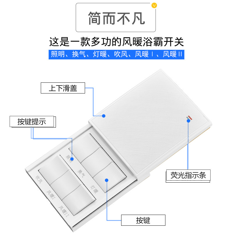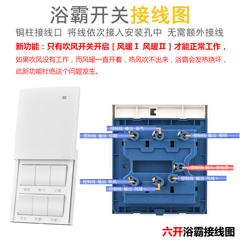 Международный электрик YA BAI 16A Высоко -мощный шесть -открытый ванна и переключатель для ванной комнаты Ветер Универсальный водонепроницаемый слайд 6 Open Open