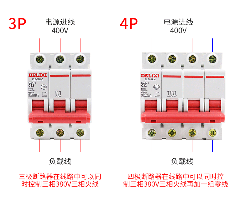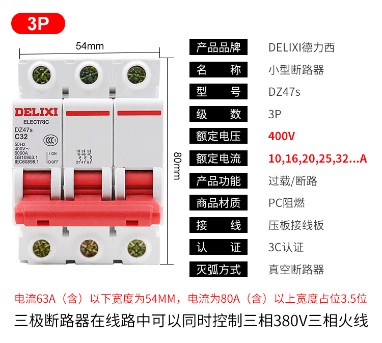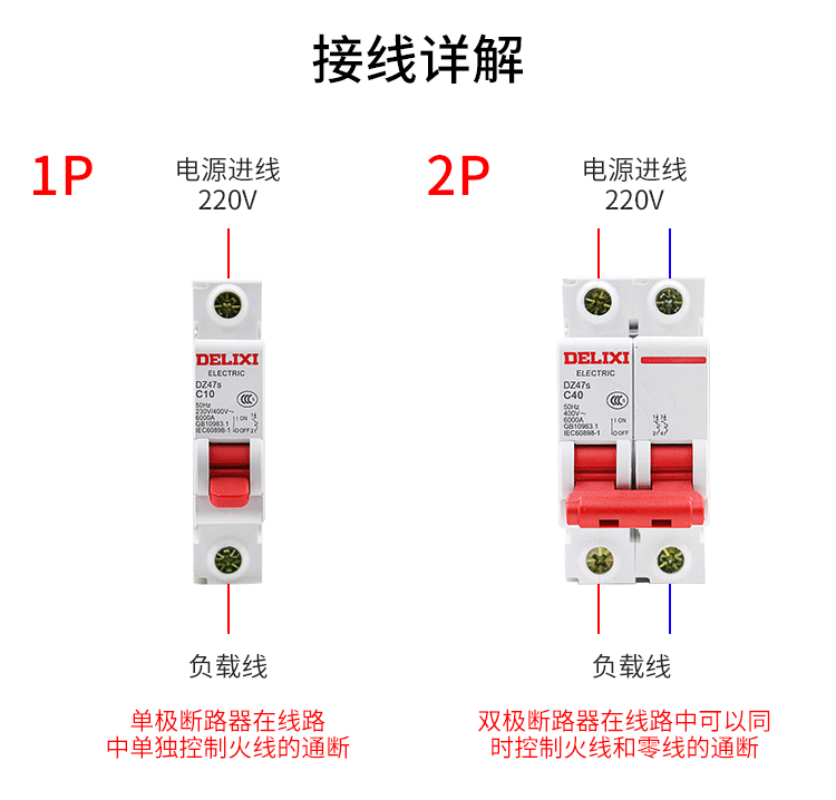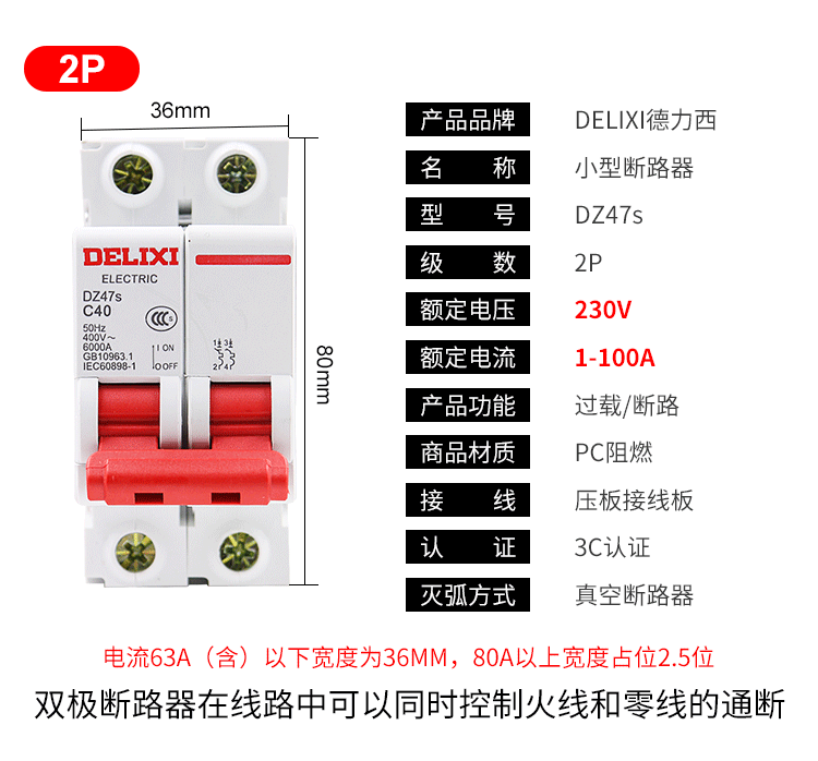 DELIXI Delixi модернизированная модель бытового автоматического выключателя DZ47S 𫔭on 𫔭off, небольшой автоматический выключатель 2P3P40A32A20A