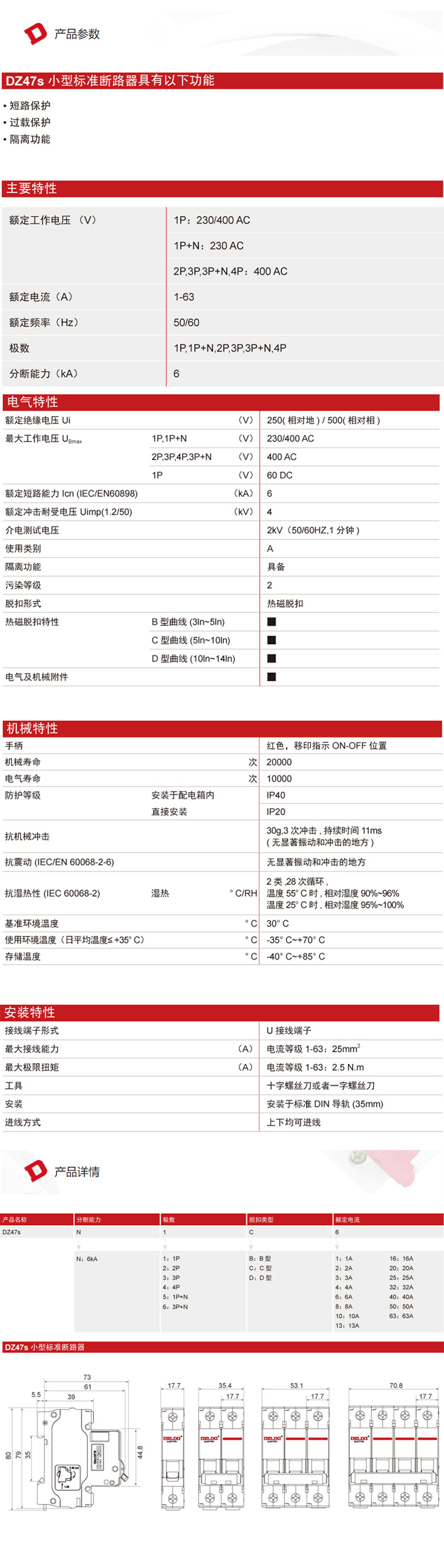 德力西 Воздушный выключатель dz47s 1p+n 10a 13a 16a 16a 25a 32a 40a 50a 63a