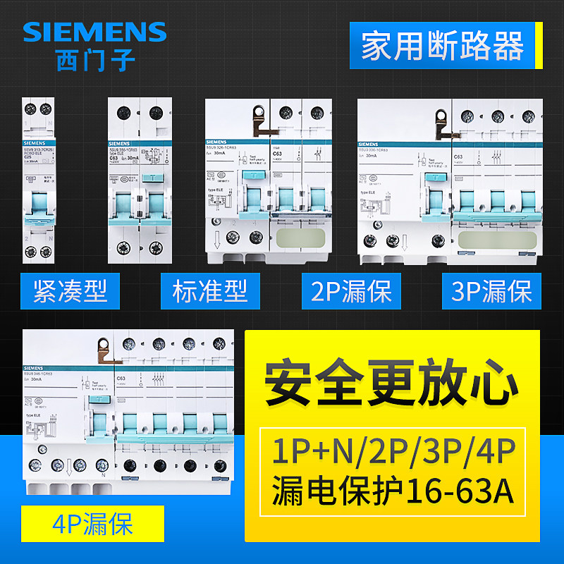 Siemens утечка защита от электроэнергии воздушный переключатель с утечкой дома 1p2p32a4p63a Выключатель цепи 1p+n утечка защита от утечки
