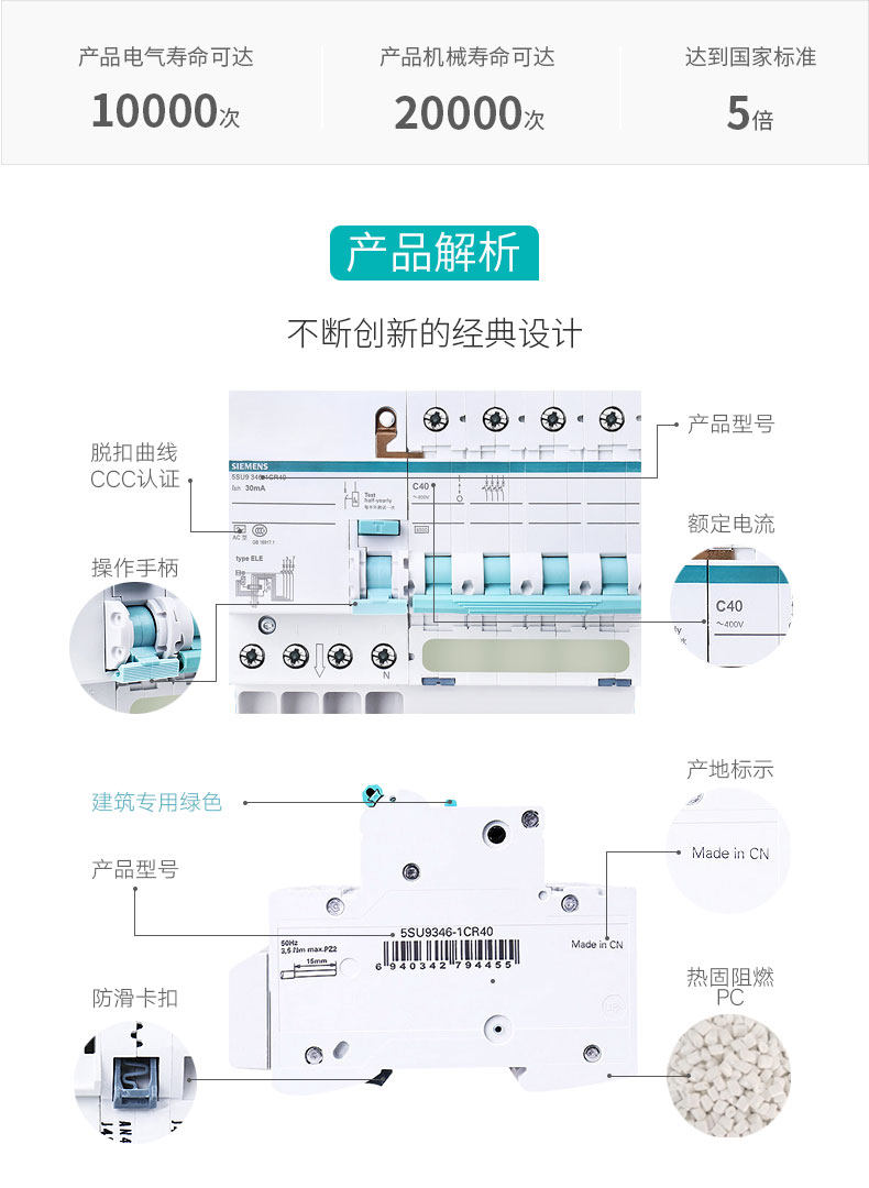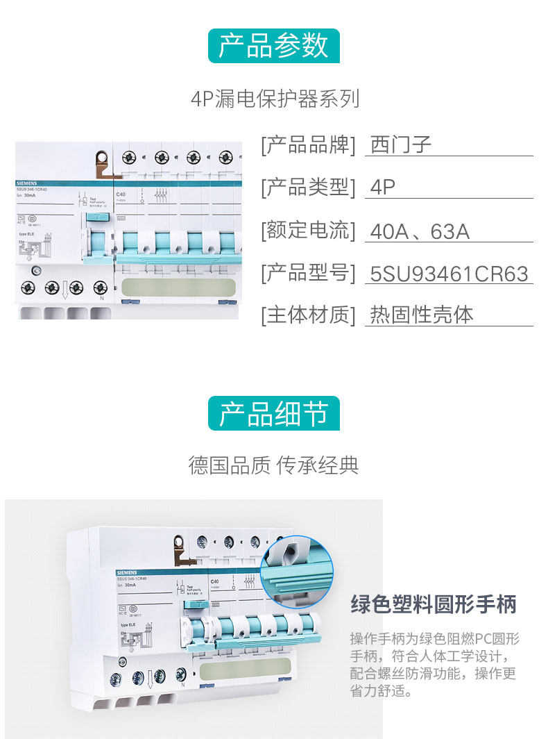 Siemens Трехфазные четырех -линейные выключатели схемы 4p Утечка воздушного переключателя 32 ANN 40A Зарядная куча 380 В