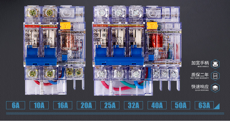 | Рейтинг тока: | 6A, 10A, 16A, 20A, 25A, 32A, 40A, 50A, 63A |
