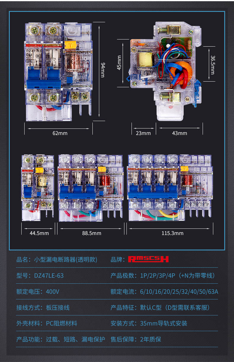 | Количество полюсов: | 1P+N, 2P, 3P, 3P+N, 4p |