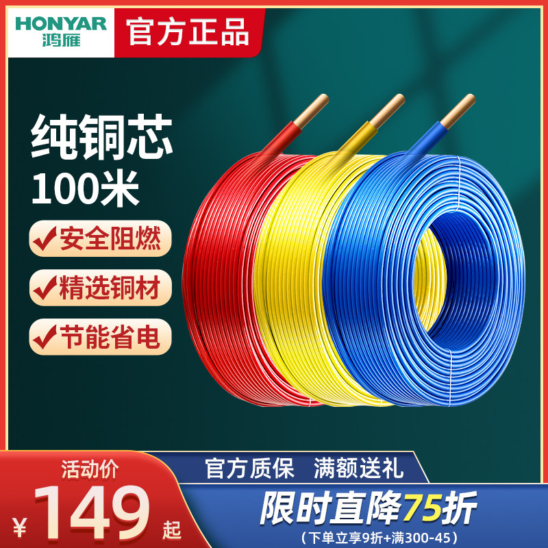 Hongyan Wire BV2,5 квадратная медная сердечная проволока национальная стандартная жесткая линия BV1,5 BV4 BV6 Multi -Color One Core Wire