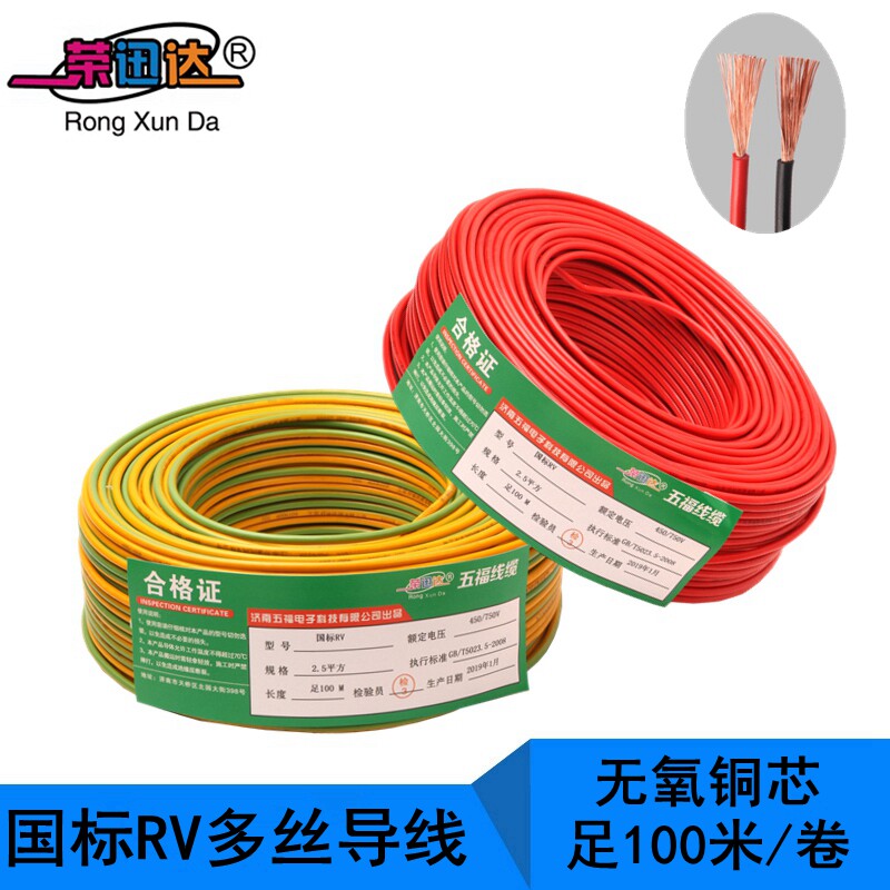 Национальный стандартный чистый медный RV Одиночный проволочный провод Электронный сварочный проволоки 0,5 1,5 2,5 квадратных домашнего однопроизводительного провода.