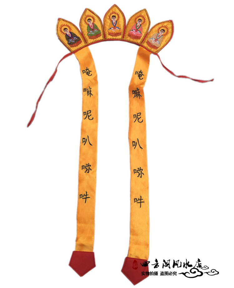 БЕСПЛАТНАЯ ДОСТАВКА Пять бутик -бутик -бутиков, вышитая шляпы, плавучие ленты высокого качества, пять коронок Будды Средние буддийские принадлежности