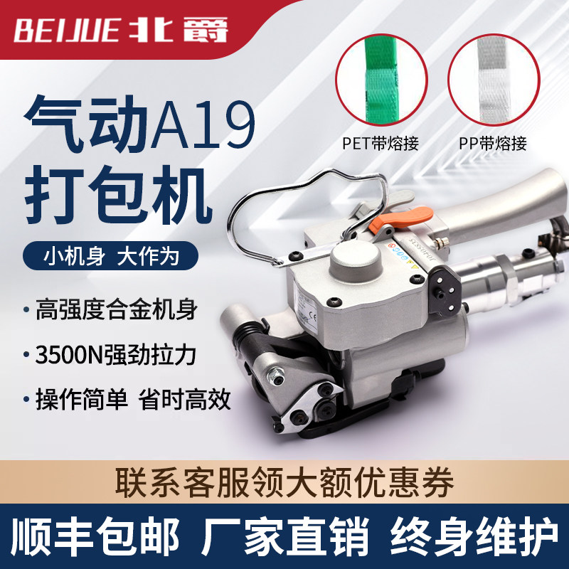 Пневматическая обвязочная машина Beijue A19/25, встроенная полностью автоматическая портативная машина для затягивания ремней B19/25, машина для обвязки термоплавкой лентой без пряжек, стальная лента из ПЭТ-пластика, небольшая машина для затягивания ленты из полипропилена