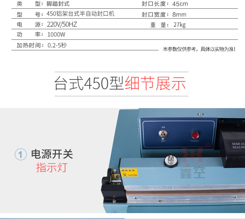 鑫空 500 Полуавтоматические тепловые уплотнительные машины 500, полностью автоматическое уплотнение для выпечки на пластиковом пакете.