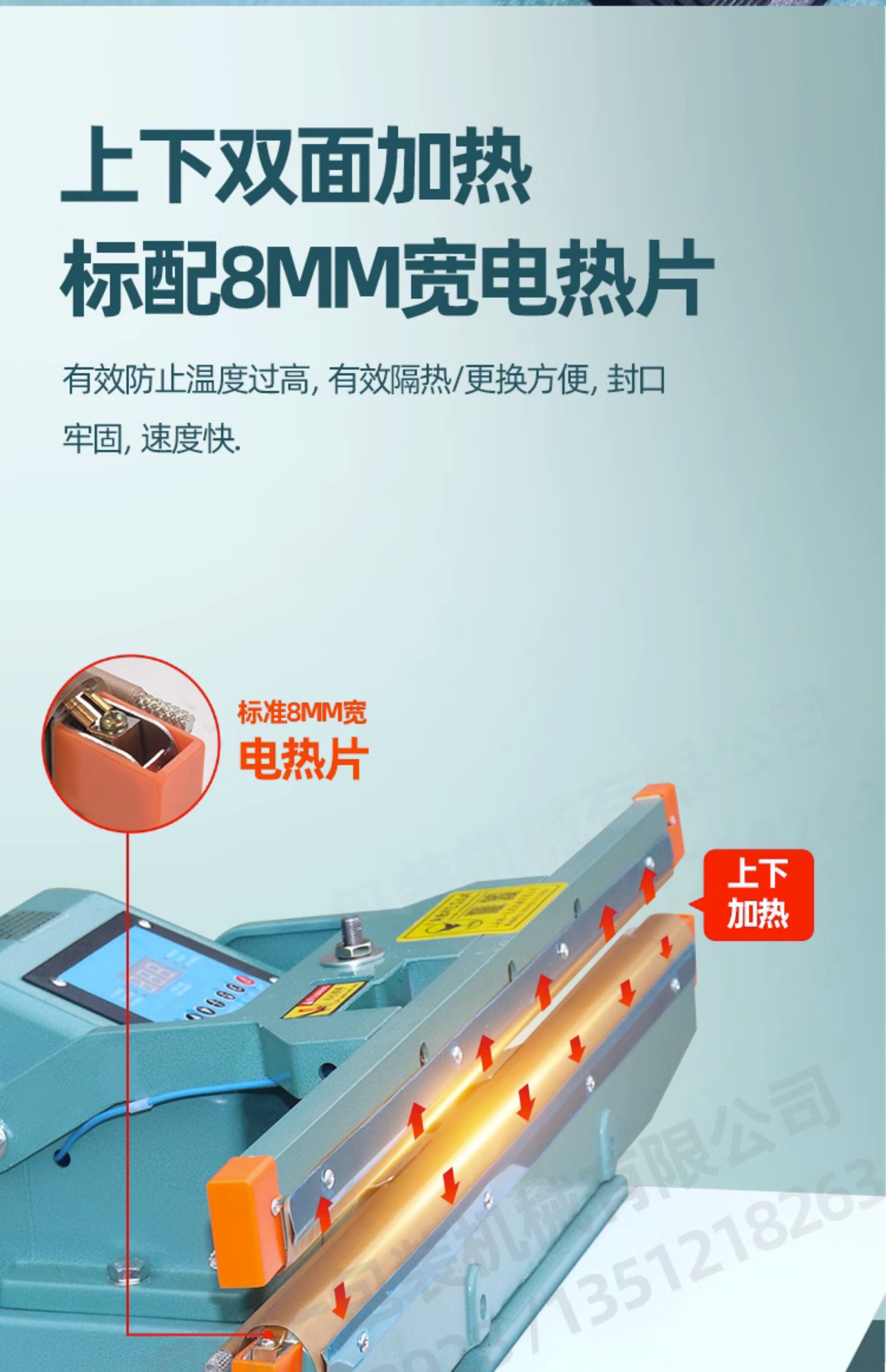 - Настольный пневматический 800*1, односторонний нагрев, уплотнение 800 мм, для использования требуется воздушный компрессор.