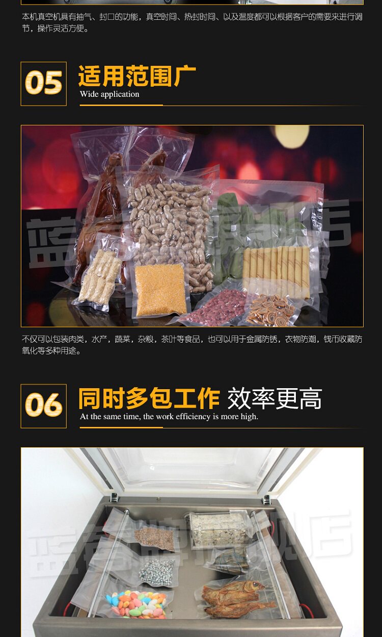Это одноместный вакуумный самолет,Может быть твердое, жидкость, порошок, пастаЕда, пища, фрукты, соленые огурцы, консервированные фрукты, консервированные фрукты, химические вещества, электронные компоненты, точные инструменты, редкие металлы и т. Д. Упакованы в вакууме. Эффект упаковки плотный, твердый и красивый