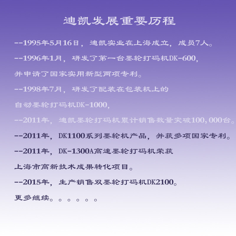 --1996Год1луна, разработал первую машину для кодирования чернилDK-600и подал заявку на два патента национальной модели коммунальных услуг.
