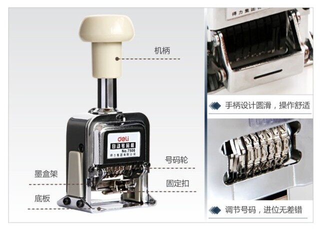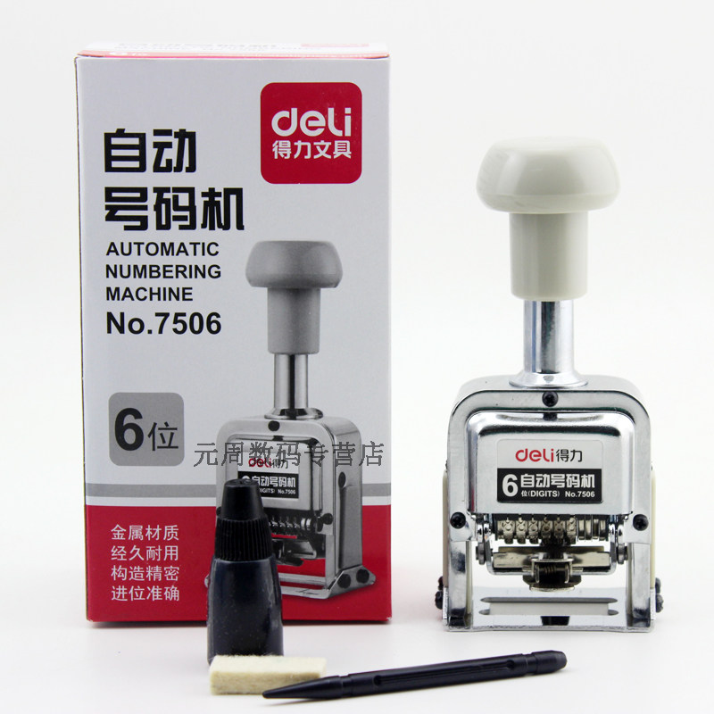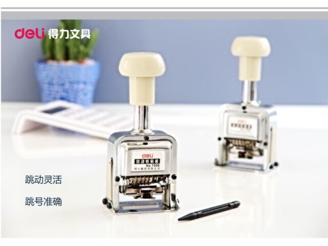 Deli 7506 Автоматический номер машины Код машины цифровой уплотнение 6 -дигита непрерывное число страниц уплотнения.