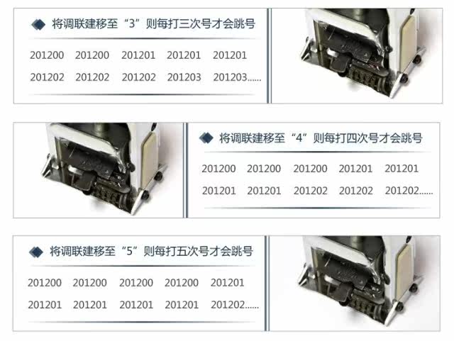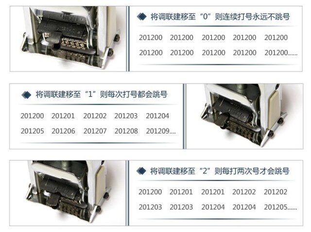 Например: отрегулировать номер на“201200”В то же время влияние различных настроек совместной конструкции (простая и быстрая эксплуатация, автоматические чернила, автоматическое количество прыжков, автоматический вход)