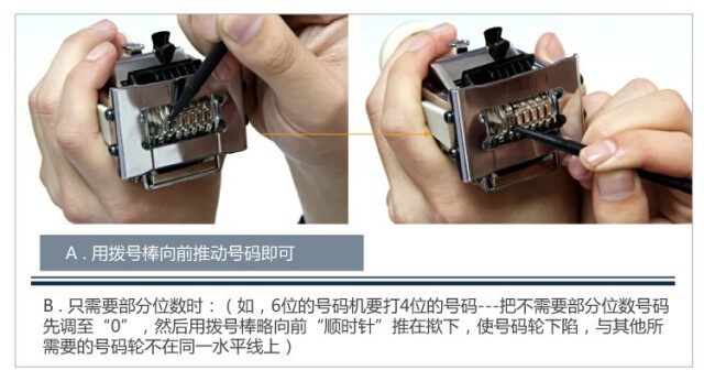 2. Метод набора (примечание: когда число продвигается, противоположное направление не может быть выдвинуто. Не толкайте его металлическим стержнем, чтобы избежать повреждения машины)