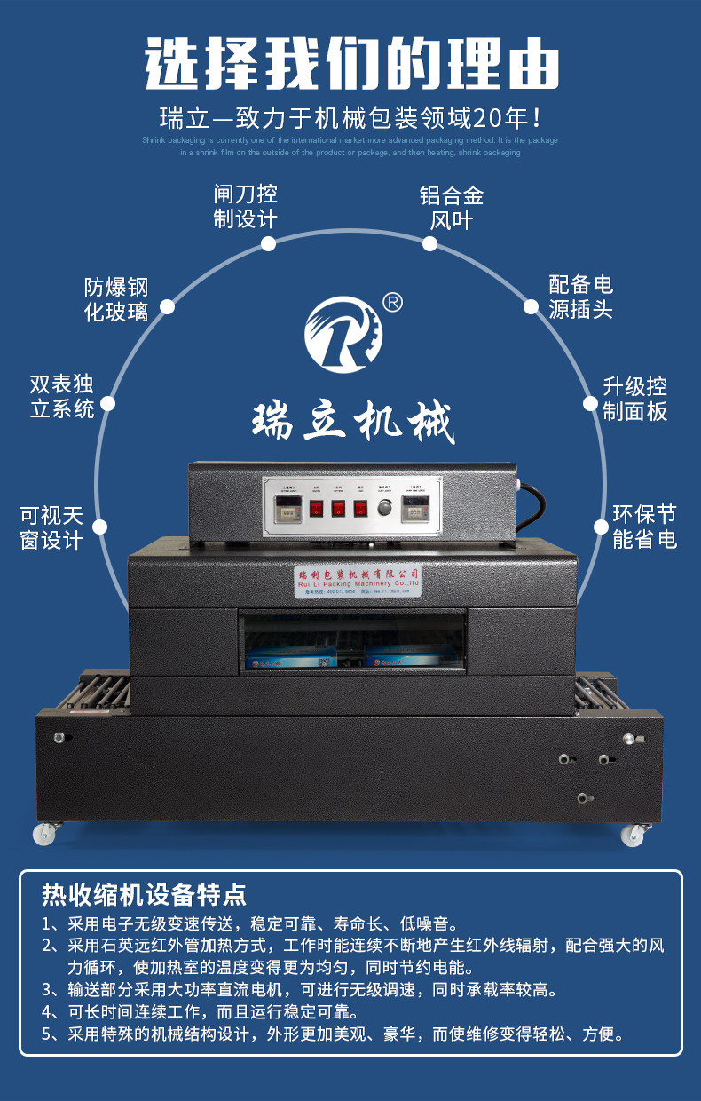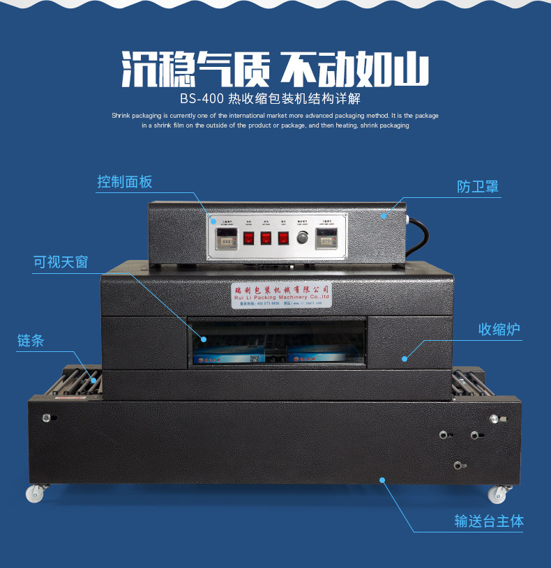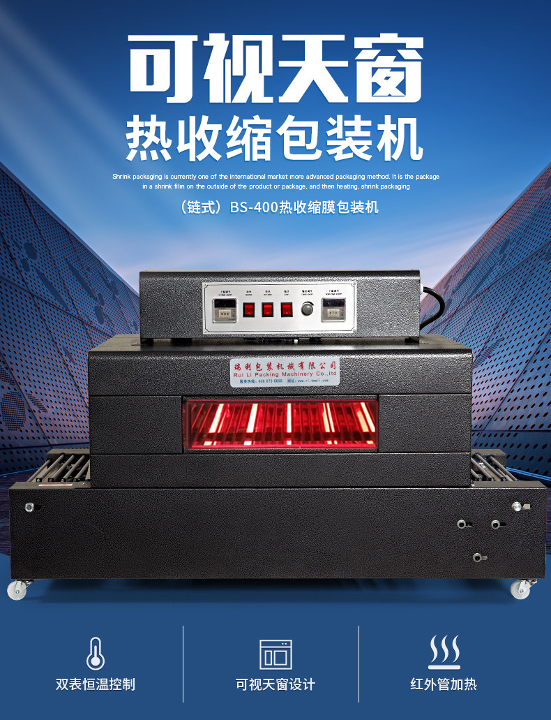 瑞立 Тепло -сокращающаяся машина BS4020 Улучшенный цепный тип чай с молоком дезинфекция навыка для косметики чайная книга Книга Книга Фотомама Термическая пленка Уплотнятельная упаковка