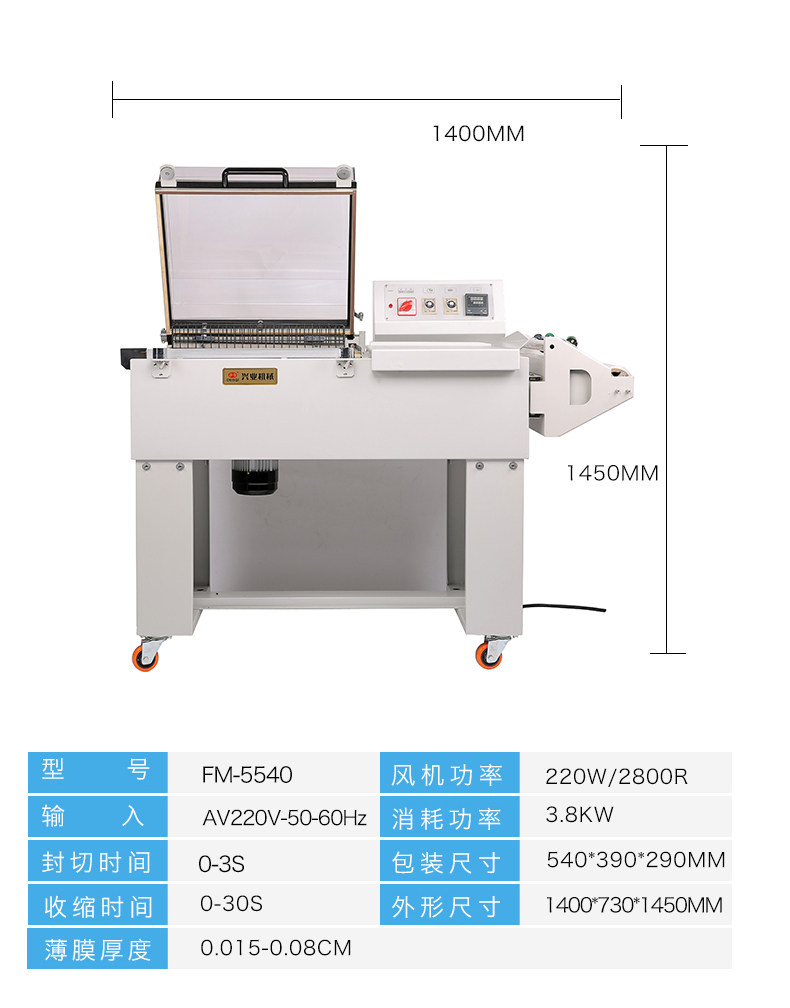 多奇 Бренд FM5540 Два -в одном тепловом упаковке Уплотняя Уплотняя -скотающая машина с нетерпением жестко рефлюкс.