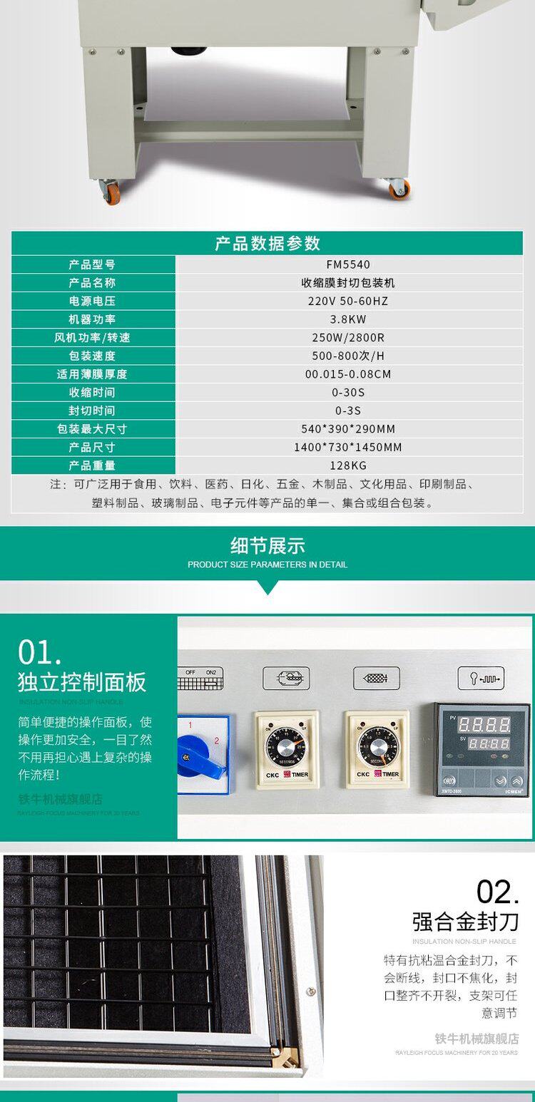 Железная корова FM5540 Диоксин -Контракционированная упаковочная пленка сжигание пленки Уплотнятельная машина и упаковочная машина пластиковая машина
