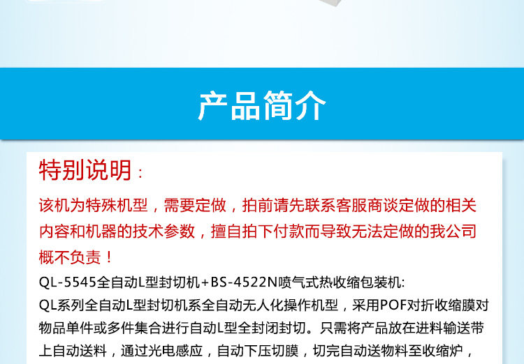 | Цвет: | QL-5545 Полная автоматическая L-образная герметичная машина, Ql5545 Полностью автоматическая L -обработанная машина для резки уплотнения+BS4522N Jet -тип переписывания тепла, SF-380 Ручная L-образная режущая машина для резки уплотнения, BS-4522N, Ql5545 Полностью автоматическая L -обработка, ZWG-590 подушка вырезана высокоскоростная упаковочная упаковка тепла (100 упаковок/минута) |