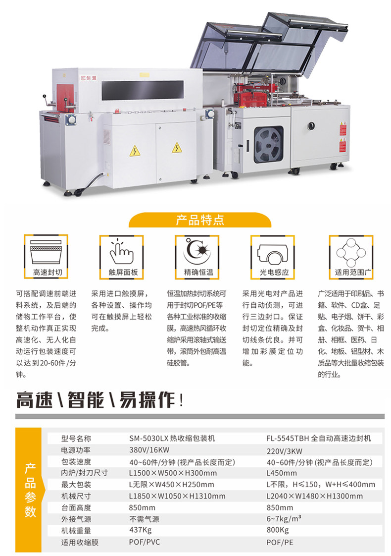 FL-5545TBH+SM-503030LX Полностью автоматическое высокоскоростное уплотнение пограничного уплотнения Автоматическое тепловое сокращение