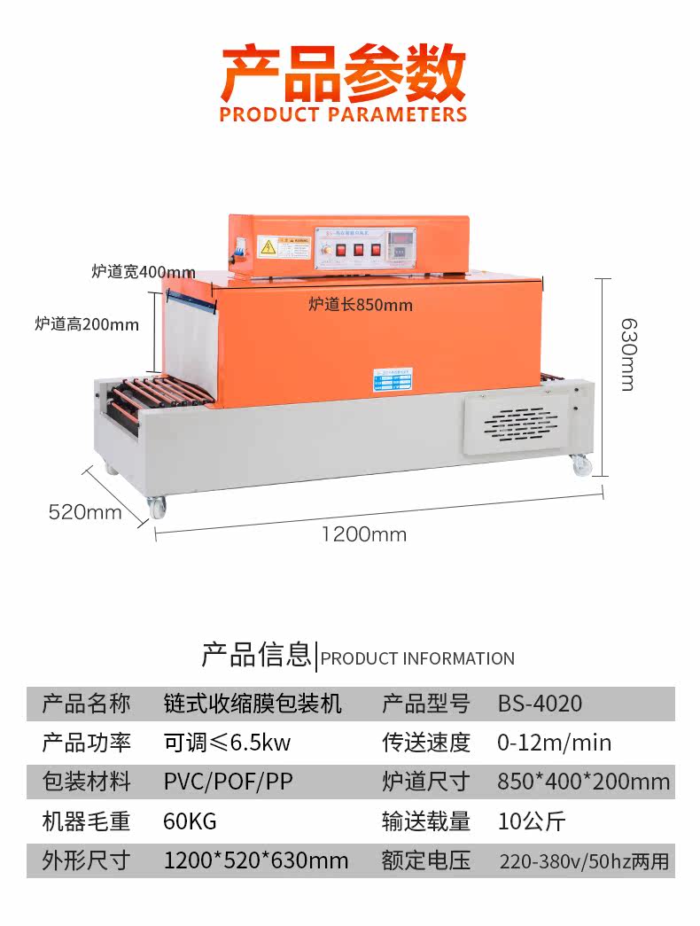 Yabi BS-4020 Chain Hot Conchinet Auto Thermal Contrestable Micro-Packing Machin