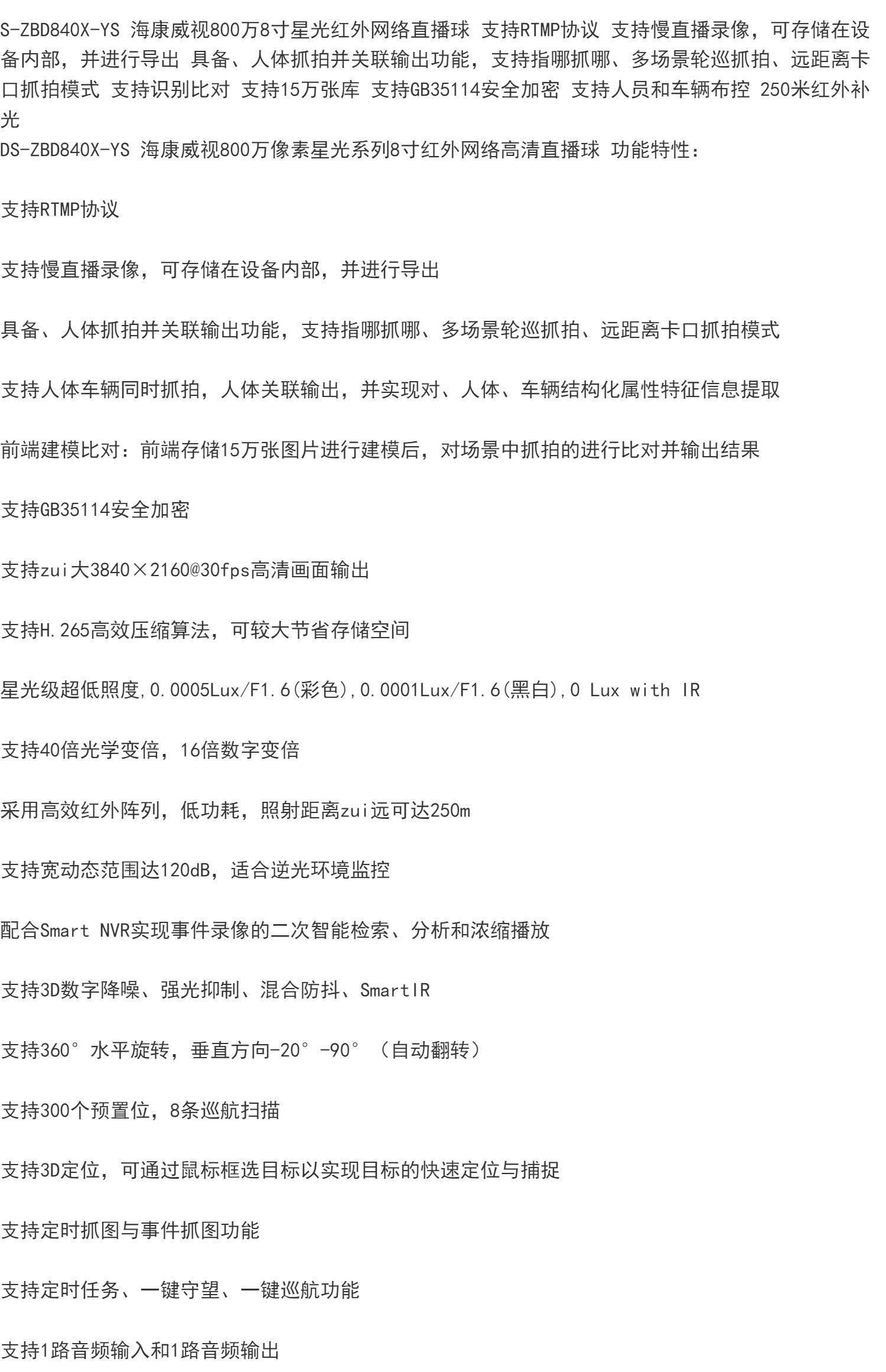 Hikvision DS-ZBD840X-YS Высокоскоростная интеллектуальная купольная камера с разрешением 4K и RTMP для потоковой передачи RTMP, 8 миллионов пикселей