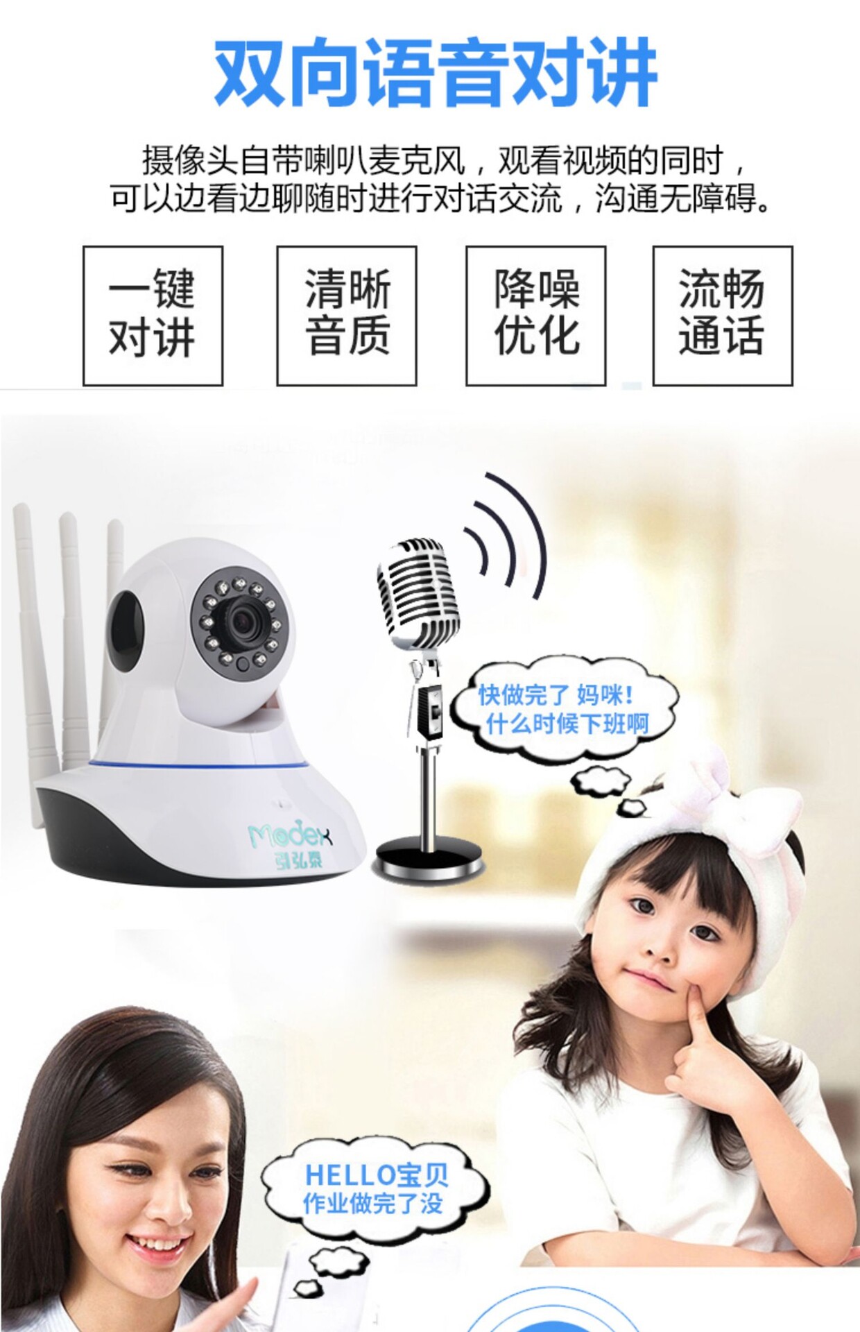 Беспроводной монитор для домашнего использования, камера видеонаблюдения, мобильный телефон, радио-няня, 360 градусов