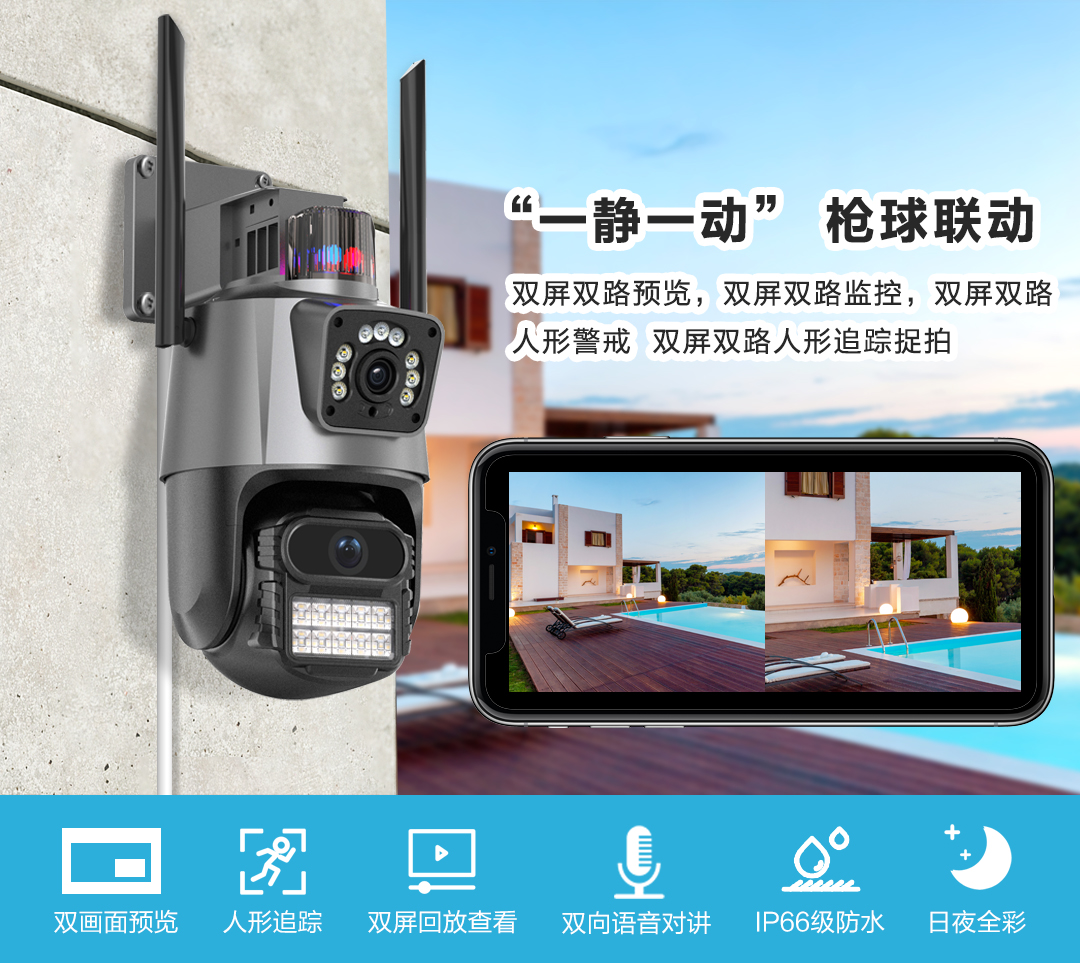 Супер взглянуть на двойную двойную двойную экрану беспроводную беспроводную камеру Wi -Fi -камеры мониторинг шарнирной камеры шар для шарика