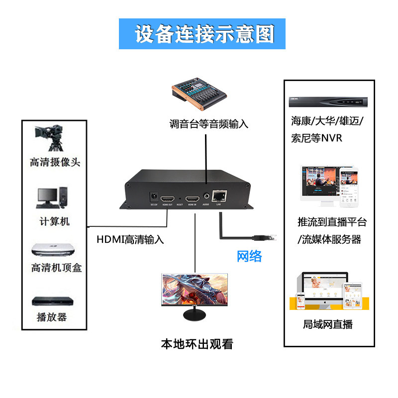 H.265HDMI RING -UT HIGH -DEFINITION VIDEY PUSH CODER и IPTV Мониторинг RTMP SRT HAIKANG NVR