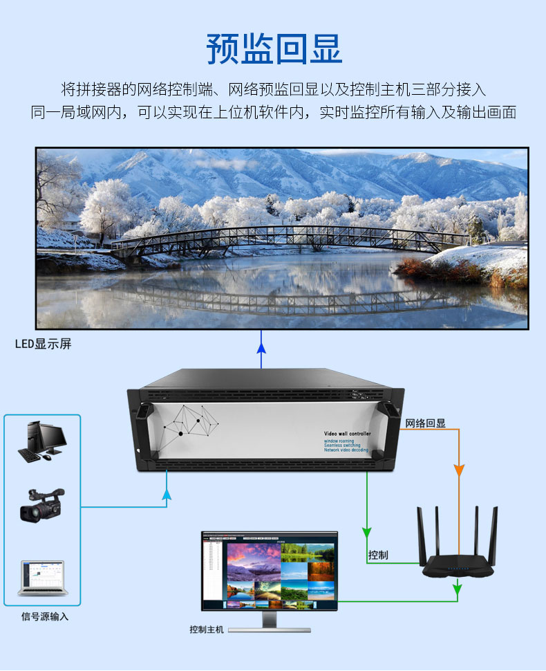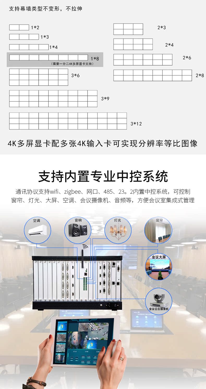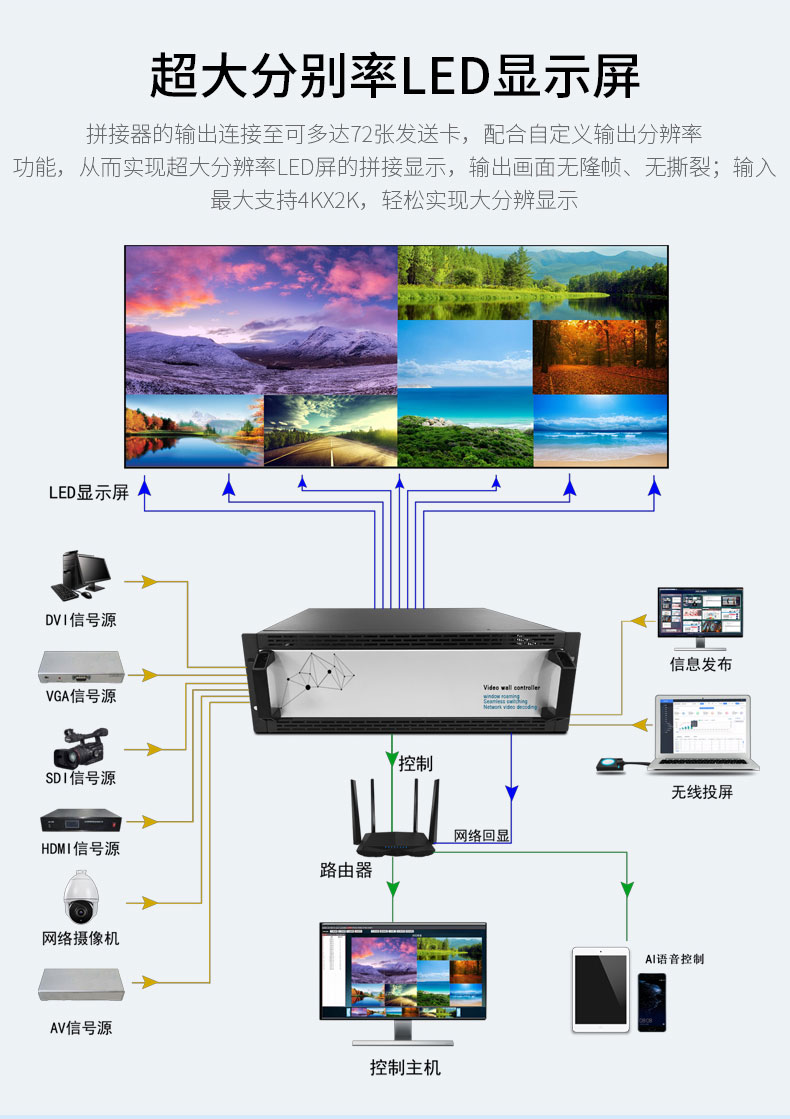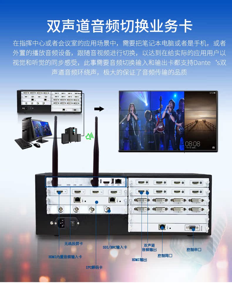 Много -экрановая сшивающая сшивающая процессор Окно Окна/Роуминг/Перекрытие/4K Вывод/Аудио