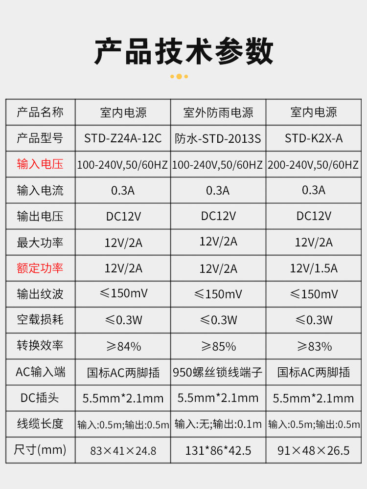 | Цвет: | STD-Z24A-12C 12V2A Сертификация электроэнергии 3C., Водонепроницаемая -STD -2013S C 12V2A Sutdoor Power Certification 3C, STD-K2X-A Economy 12V1.5a Внутренний источник электроснабжения |