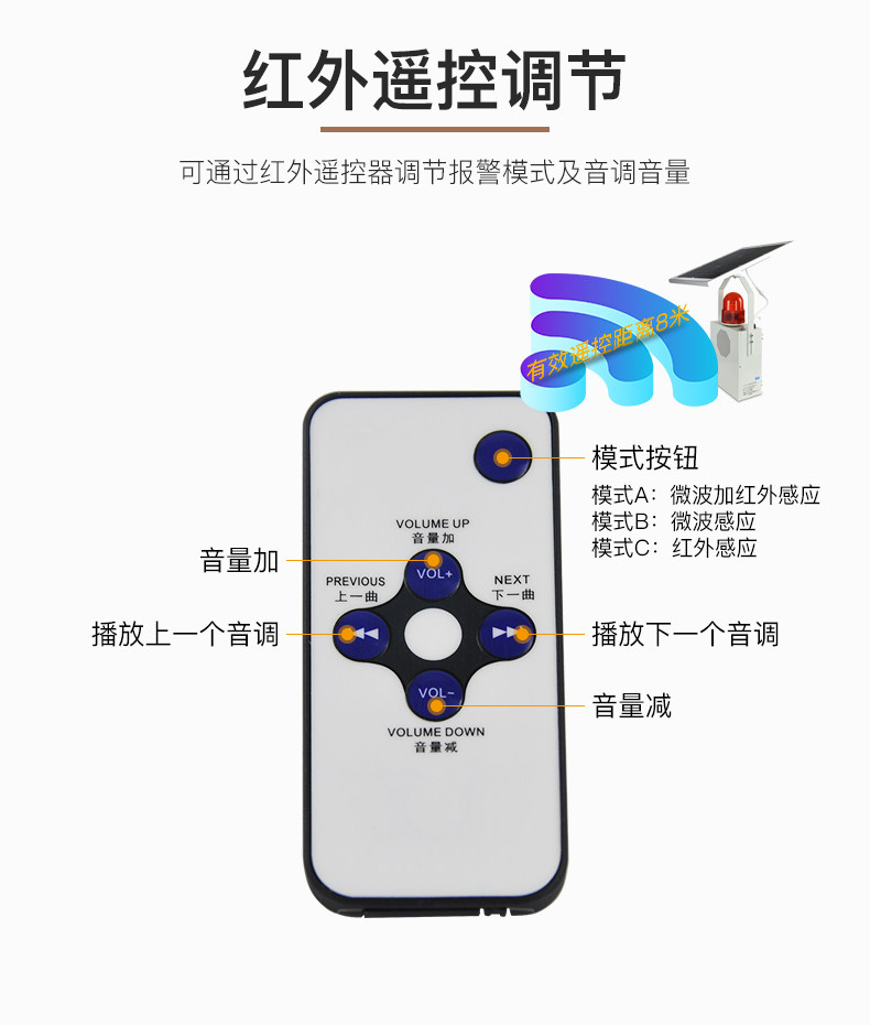 11-летний магазин три цвета TG-118VS-II Солнечная звуковая сигнализация.