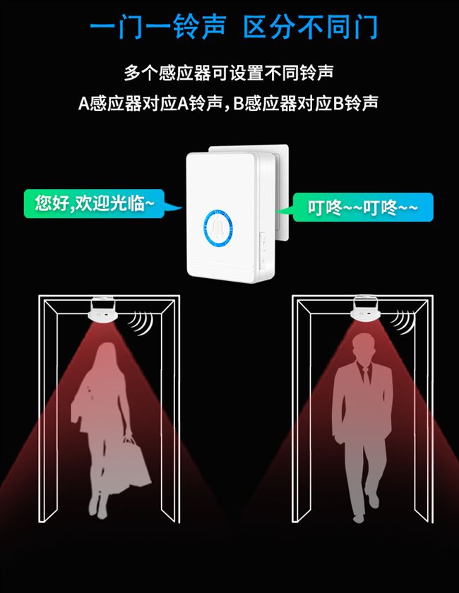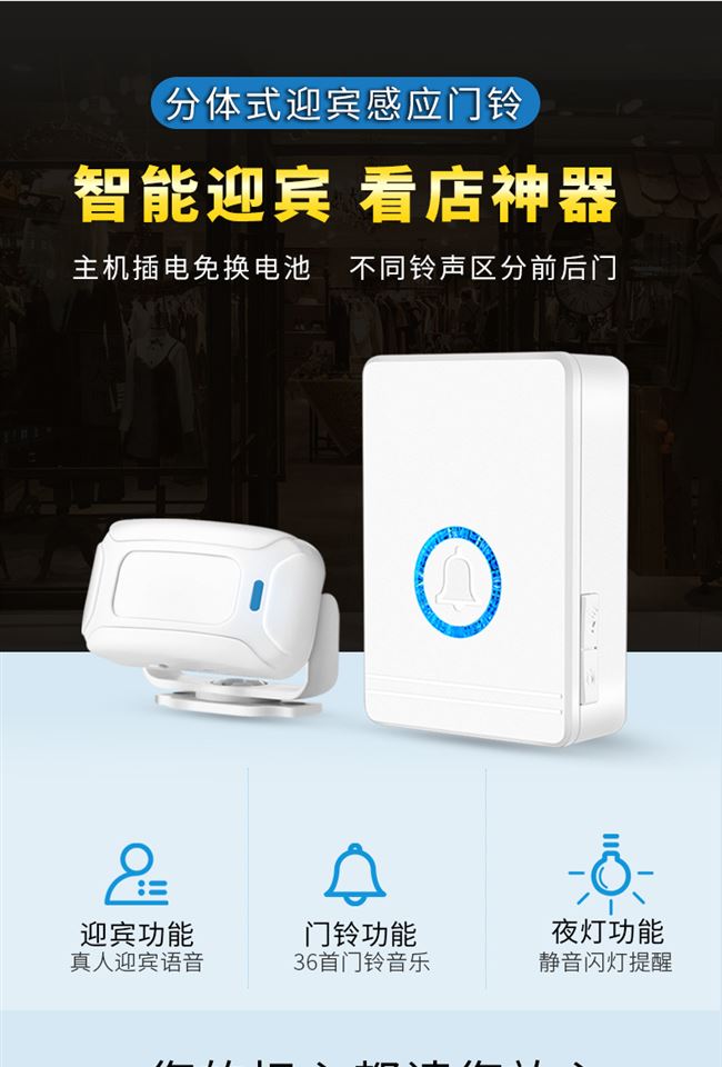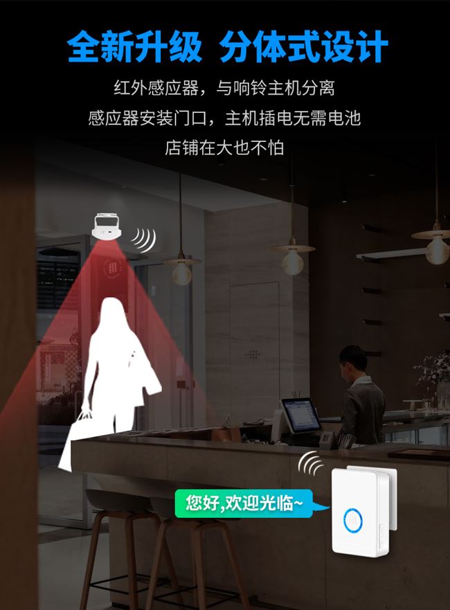 Датчик приветствует в листинговой стиле, чтобы войти в магазин магазин, дверь бизнеса Ding Dong Дверь Дверь Добро пожаловать голос