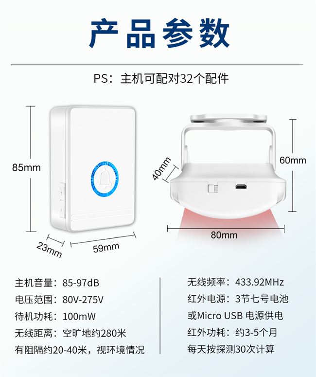 - 2 колоколового хоста +1 инфракрасный датчик отправьте батарею