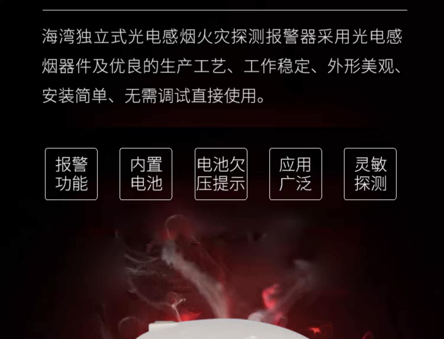 Независимый дым -чувствительный к дымке с помощью плавного обнаружения дыма.