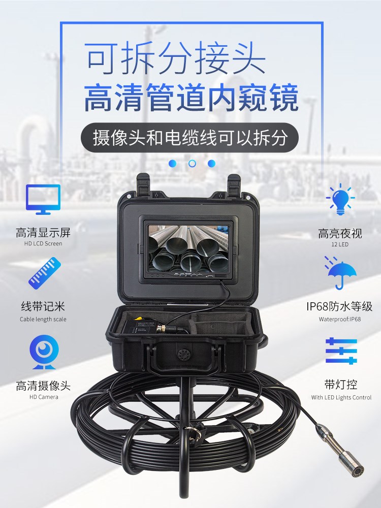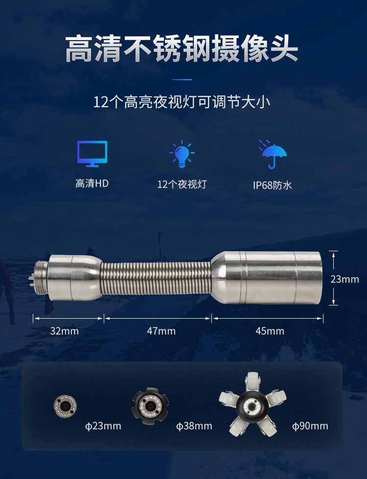 Эндоскопические ремешки промышленного трубопровода могут выбрать Wi -Fi, чтобы повернуть водонепроницаемые и выделенные светодиодные фонари под контролем канализации.