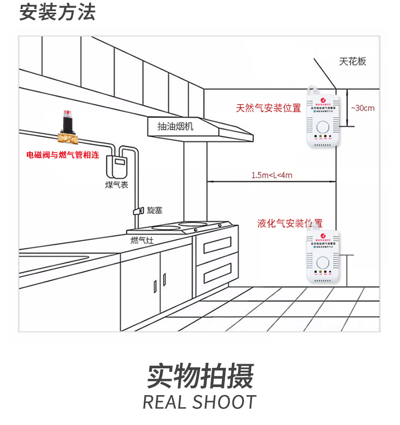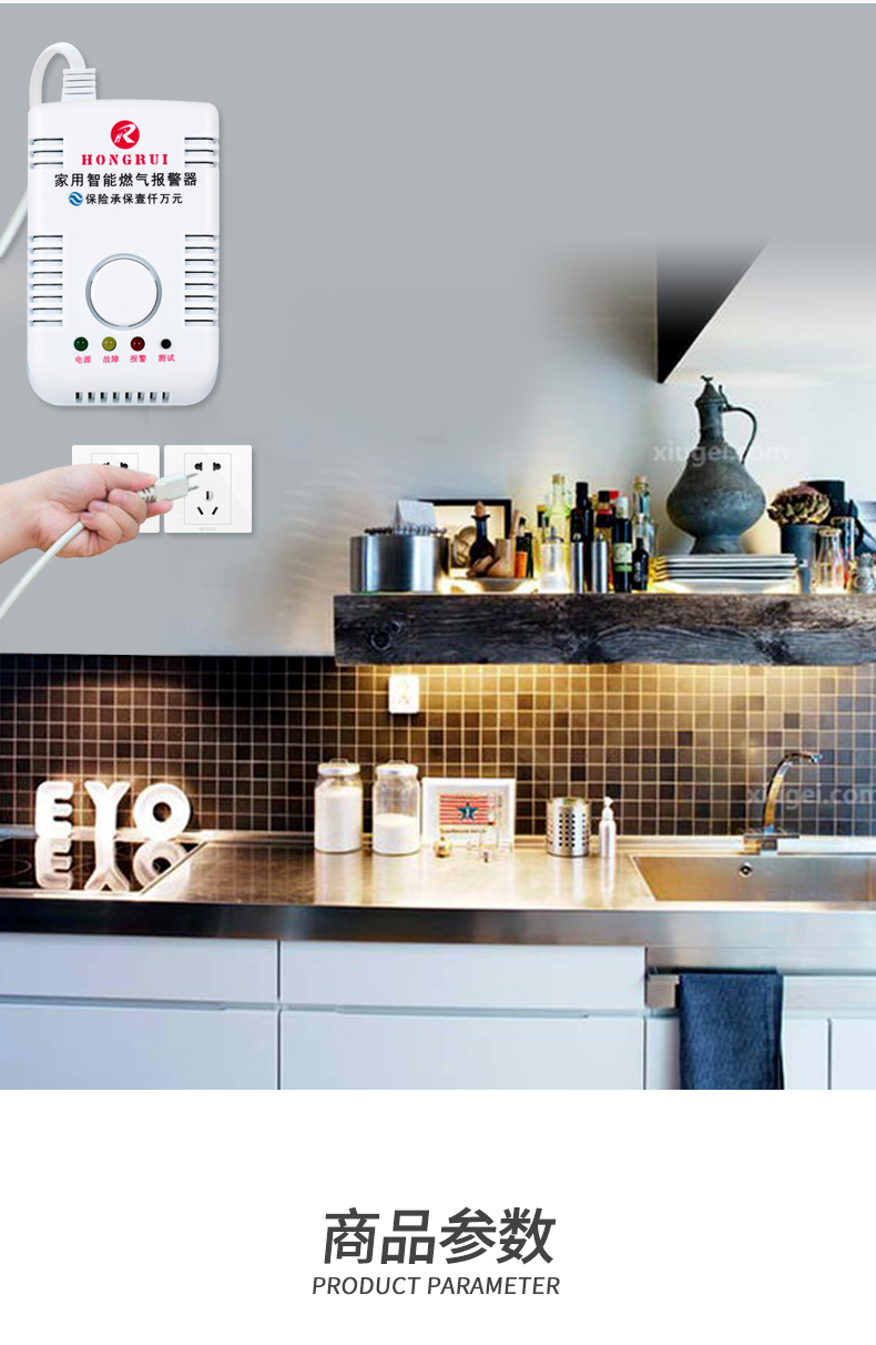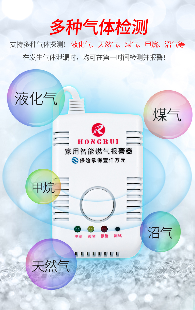 虹锐 Газовая сигнализация газовой газовой газовой газовый бак дом кухня сжиженный газовой газ.