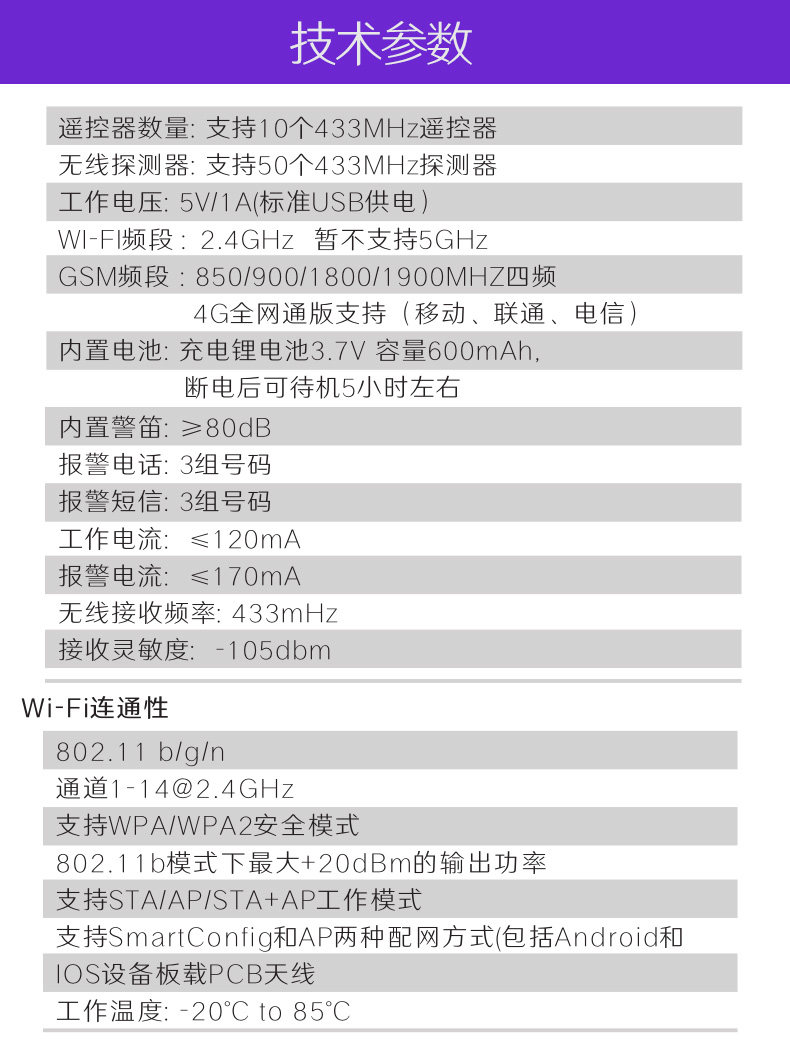 i: | 4G+Wi -Fi тревожный хозяин 1+беспроводная температура и влажность интегрированный контроллер 1+пульт дистанционного управления 2+дверной магнитный 1+инфракрасный 1+источник питания 1 | 806 |