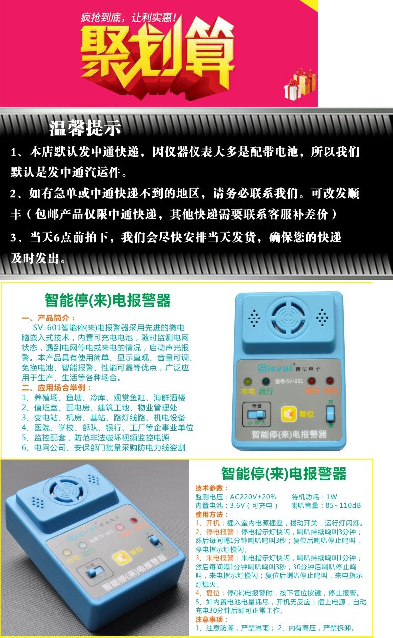 Интеллектуальный отключение питания на ферме 220V Расчеты тревоги SV-601 Объем настройки питания с тревоги