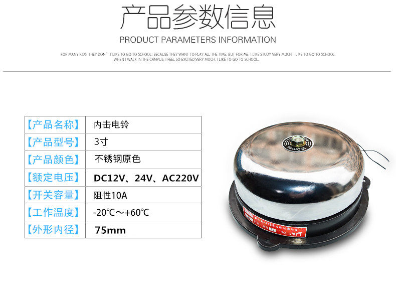 Этот продукт представляет собой искробезопасный электрический звонок.Он подходит для промышленных и горнодобывающих предприятий, государственных учреждений, общественных мест, школ и вспомогательного оборудования и оборудования.Он используется в качестве сигнала вызова или уведомления. Он также подходит для использования в качестве дверных звонков и сигнализации дома.