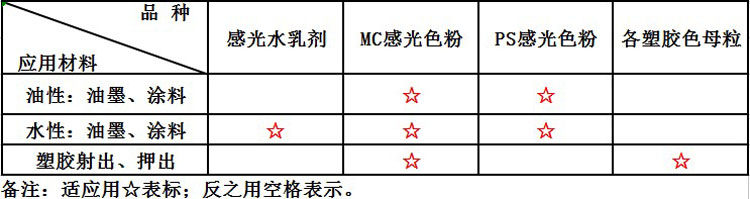 3.Изменение цветаНа оттенок продукта будет влиять полярность среды, например: различные органические растворители, разные пластики или смола, поэтому один и тот же чувствительный к свету материал часто дает различные цветовые эффекты в различных средах среда.