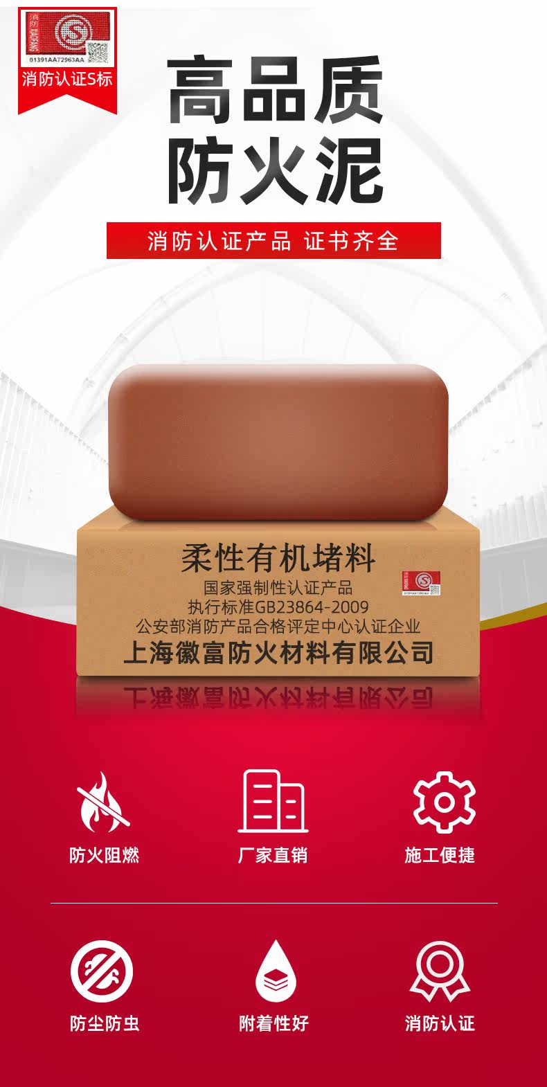 Шанхай Хуифу Огненная грязь/национальная стандартная органическая огневая блокировка/гибкая сертификация пожаротушения на экологически чистке органической блокировки.