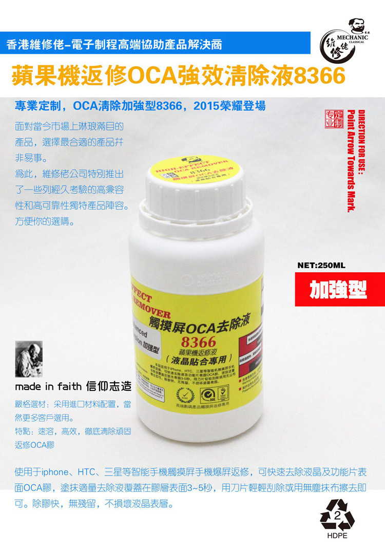 Ремонт мобильного телефона ЖК -дисплей OCA de -GUM Удаление перекрывающегося ремонта парня 8366 Укрепление клей 250 мл