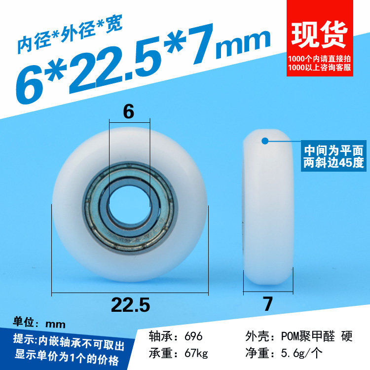 6*22,5*7 Нейлоновые пакеты Пластиковое колесо подшипника