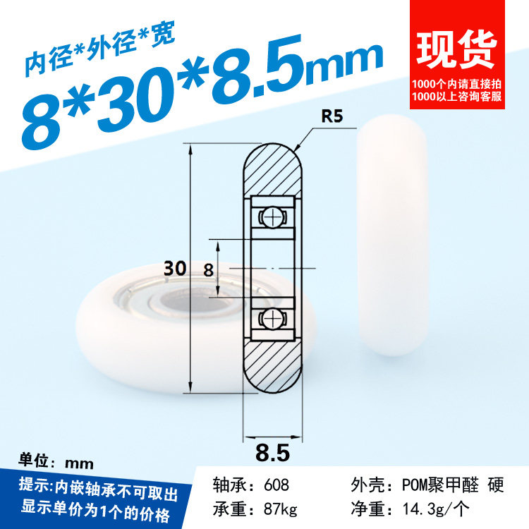Нейлоновый полиоксиметилен, принтер, подшипник, 8×30×8.5мм, 3D печать