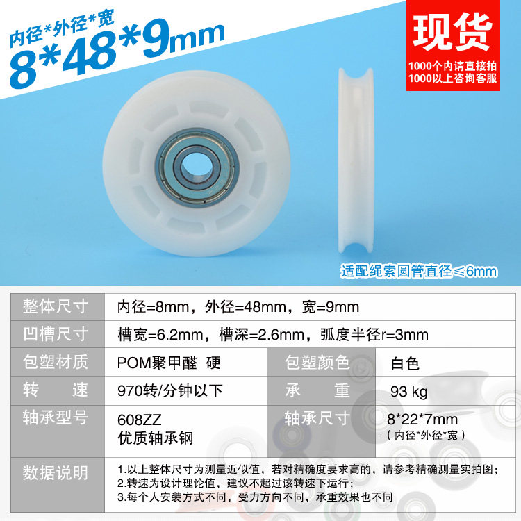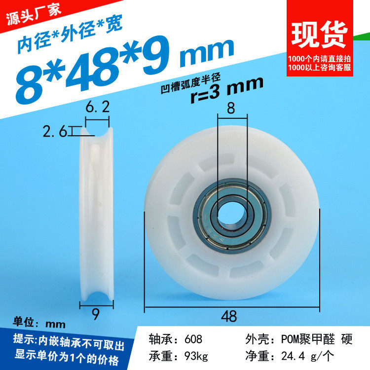 8*48*9 Groove Wheel U -Caperable Встроенное встроенное шкив для шкива/нейлоновый пакет Резиновый пакет Пластиковая стальная труба перекрестка
